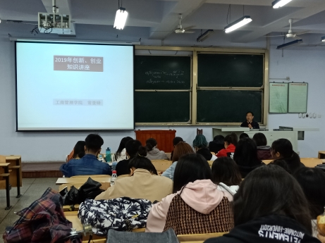 为大力推动创新创业工作, 2019年4月25日,工商管理学院邀请常景铎教授在一号教学楼一楼报告厅举办了创新创业知识专项培训讲座。工商管理学院教科办主任李红梅主持,李红梅主任强调了创新创业对人才培养的重要性,师生共计200余人参加了讲座。
